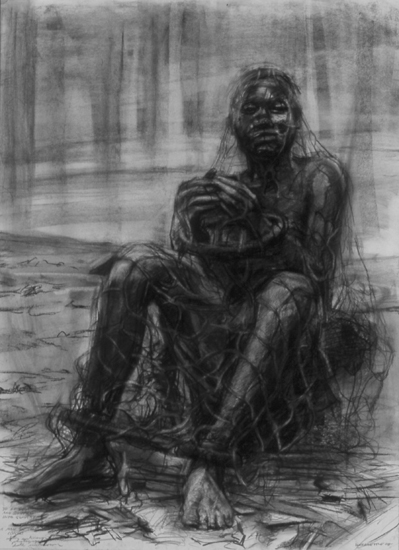 “Congo (?) Captive Awaiting Transport” 30×22″ Charcoal 2000